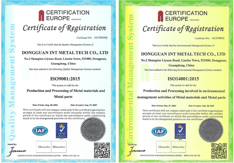 INT-Zertifikate – ISO9001 und ISO14001